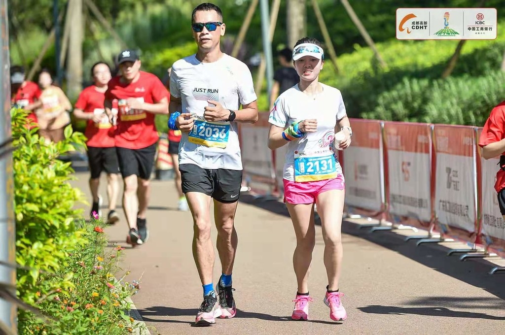 夏日艳阳下,绿茵府河畔。7月17日,2021成都高新“YO氧绿道·乐RUN高新”绿道优跑赛事桂溪生态公园站鸣枪开跑。800名跑友在奔跑中享受运动乐趣、感受幸福美好生活。