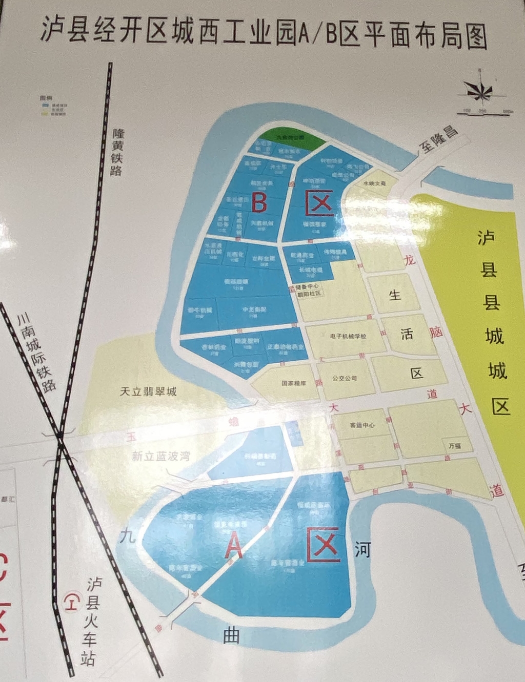 他又把目光重新拉回到经开区平面图上——A区与C区之间,绵泸高铁与隆黄铁路在这里交汇,形成字母“X”状,隆黄铁路的站点泸县火车站正设在园区内。