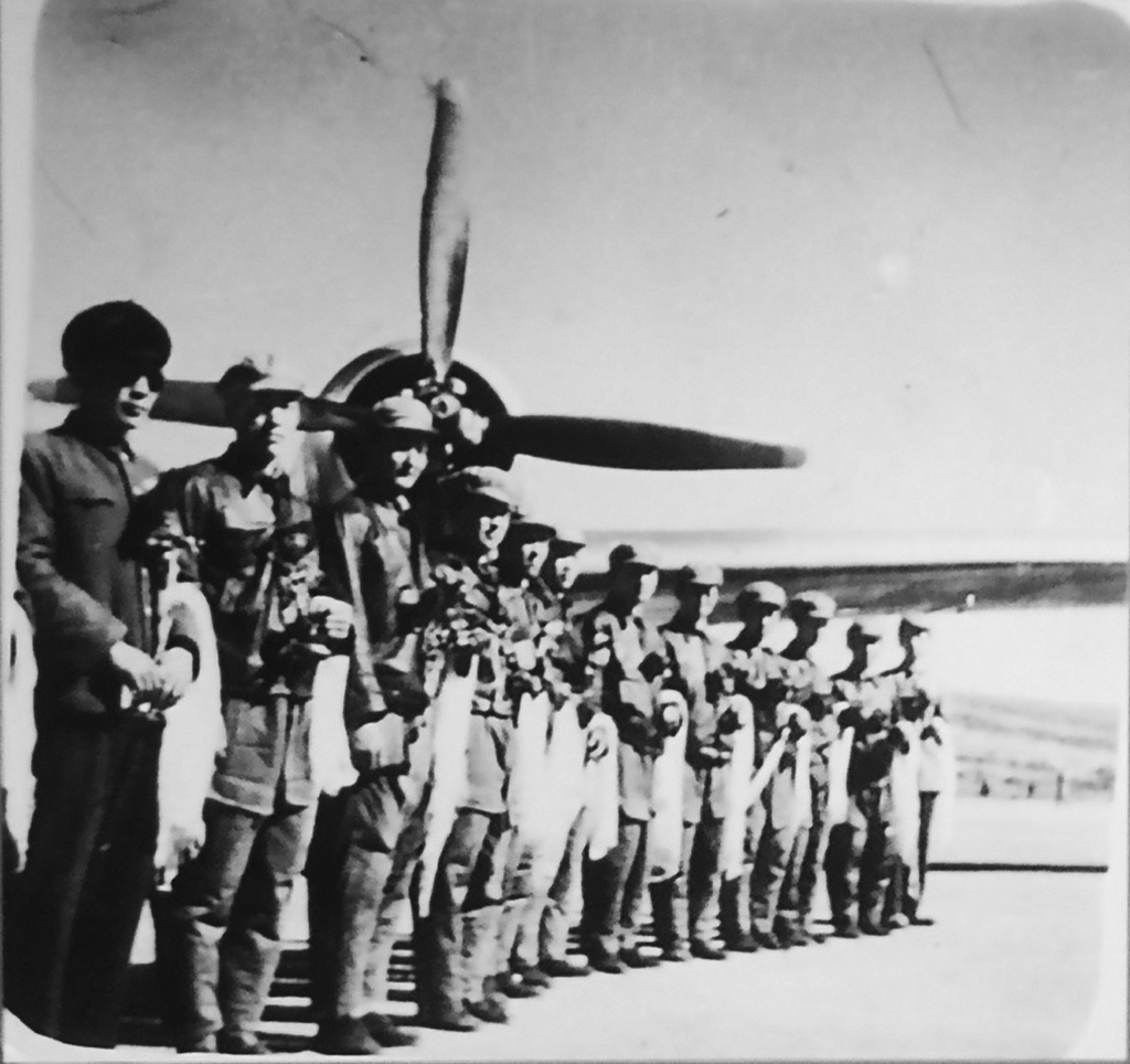 18军战士欢迎甘孜机场第一架飞机(历史图片由18军后代张小康提供,刘炳科翻拍)