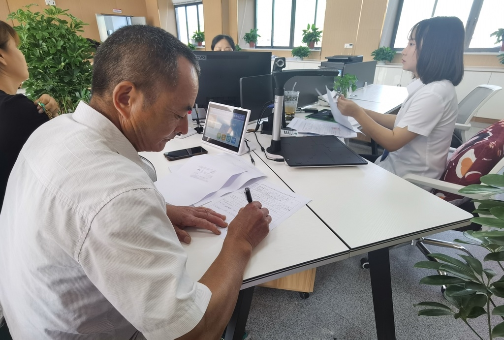 三里坪街道高岩村代办员为村民代办农保