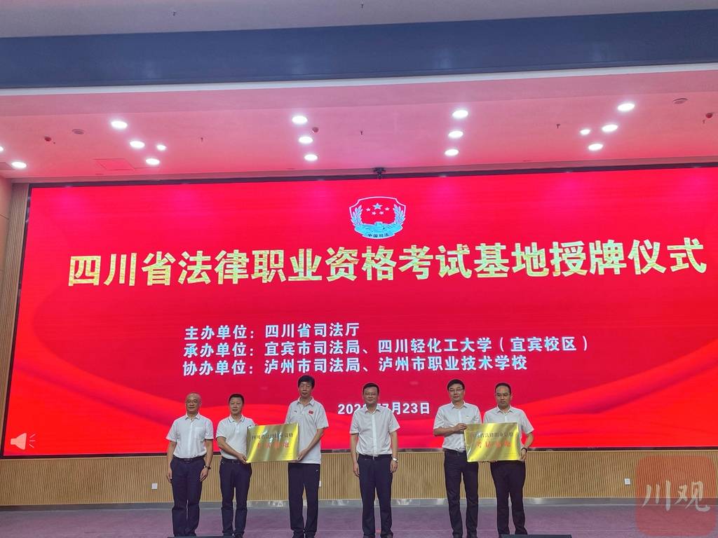 7月23日,四川省司法厅在宜宾为全省第二批通过评估验收的泸州市职业技术学校和四川轻化工大学(宜宾校区),举行了“四川省法律职业资格考试基地”授牌仪式。省司法厅党委委员、副厅长孔祥贵代表省司法厅为两所高校授牌。