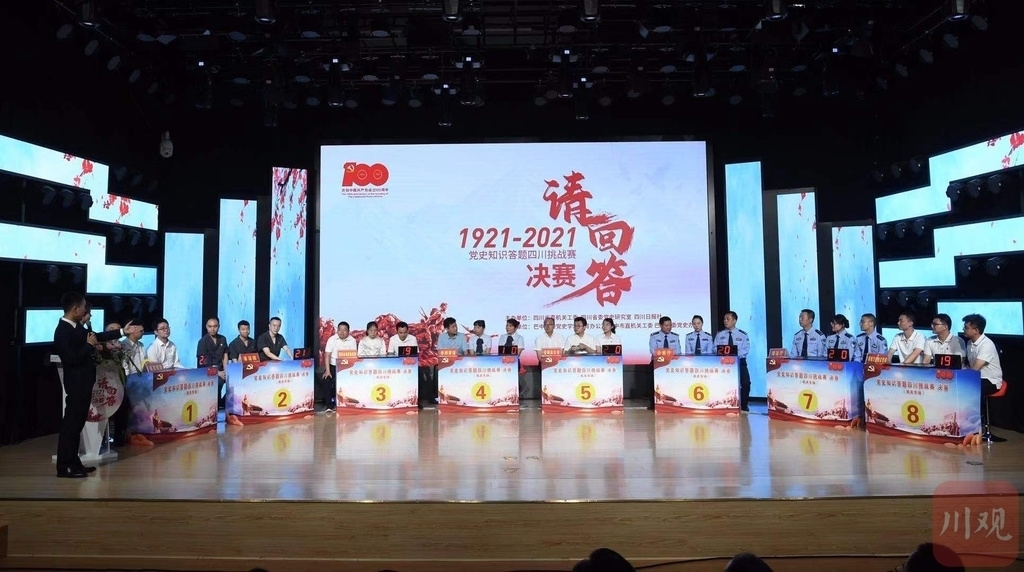 在庆祝中国共产党百年华诞、全国上下深入开展党史学习教育之际,7月23日,由省直机关工委、省委党史研究室、四川日报社联合主办的“请回答1921-2021”——党史知识答题四川挑战赛(机关党员干部专场)决赛在革命老区巴中市打响。经过紧张的现场角逐,省发改委、中国邮政四川省公司、省法院代表队获得省直机关组前3名,雅安市、巴中市、眉山市代表队获得市(州)组前3名。