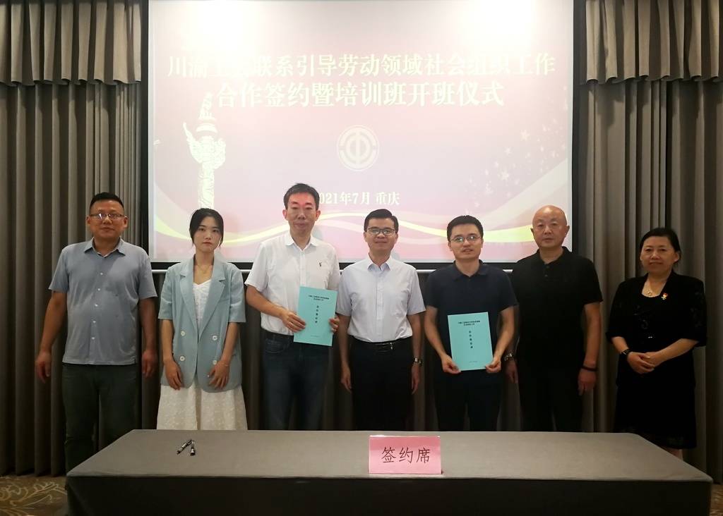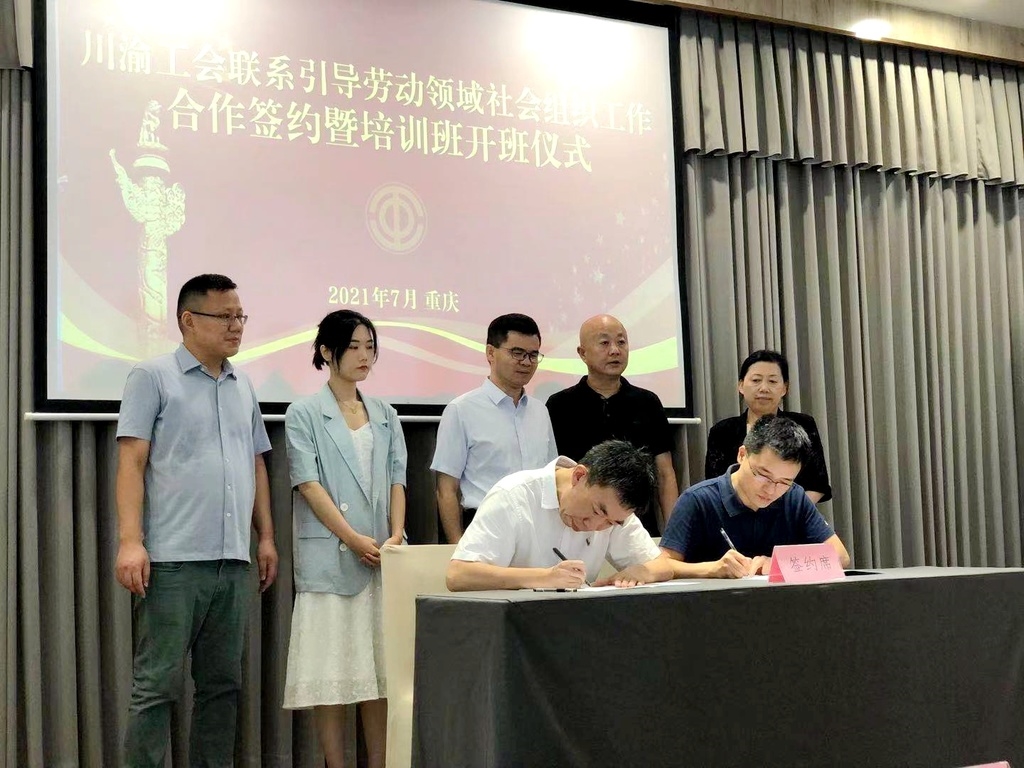 7月21日,川渝工会联系引导劳动领域社会组织工作合作签约暨培训班开班仪式在四川省总工会重庆北温泉工人疗养院举行,活动旨在认真贯彻落实党中央关于群团组织联系引导社会组织的决策部署,全面加强工会对劳动领域社会组织的政治引领、示范带动和联系服务,进一步加强川渝两地工会和劳动领域社会组织之间的交流合作。