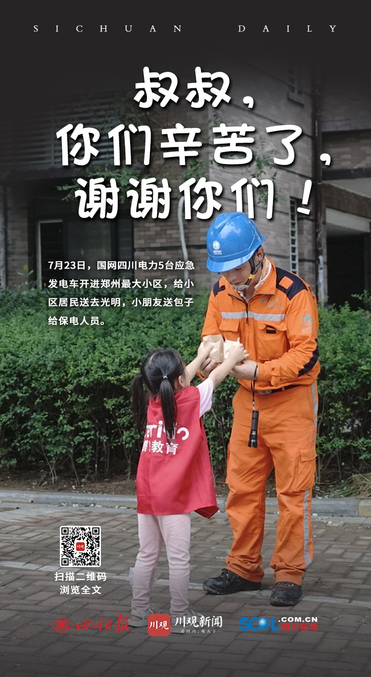 据最新消息,由400多人组成的国网四川电力第二批抢险救援队,携带10台应急发电车等物资装备,正昼夜兼程赶往河南。