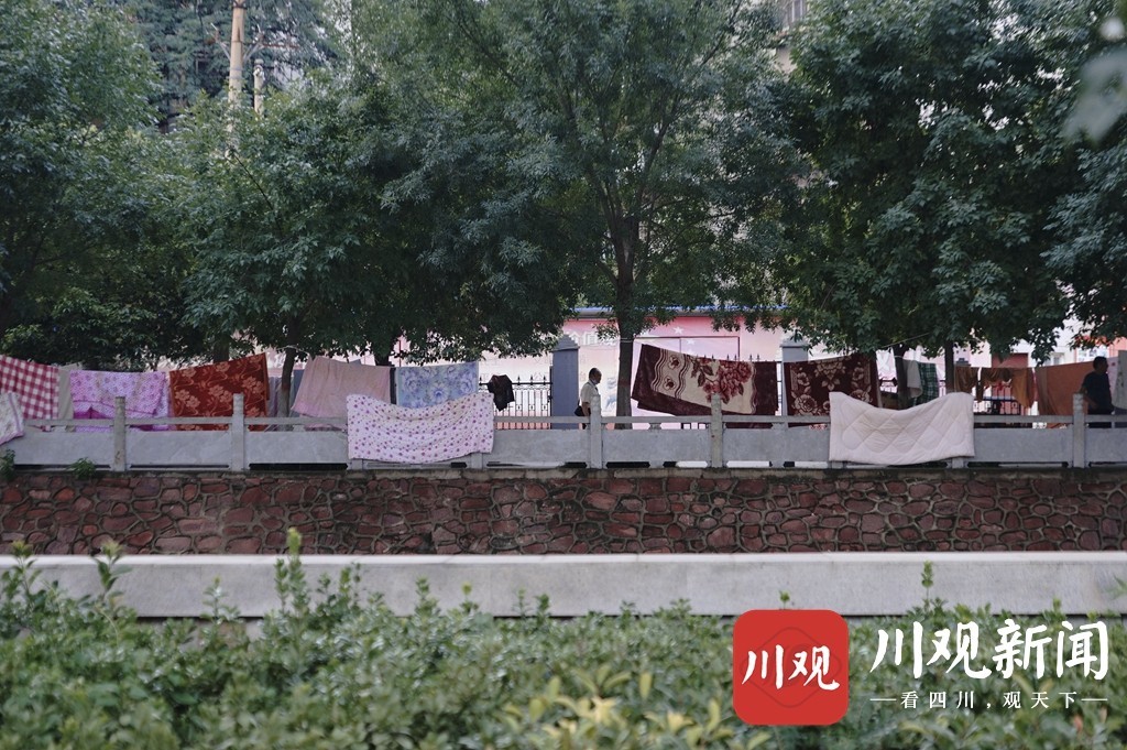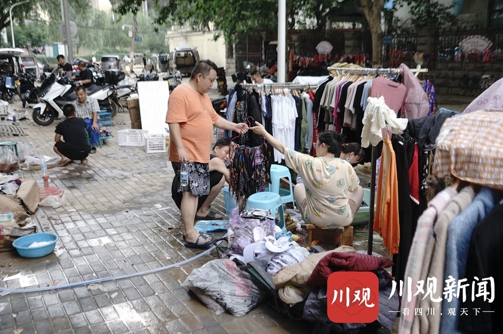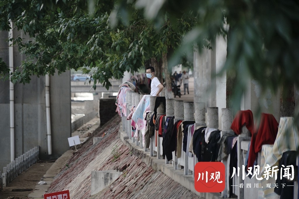 当日,郑州迎来了暴雨之后首个晴朗的天气,不少市民将家中被浸泡的衣物、被子拿出来晾晒。同时,许多受灾店铺商家也将自家货物抢救出来,积极清理和补救。