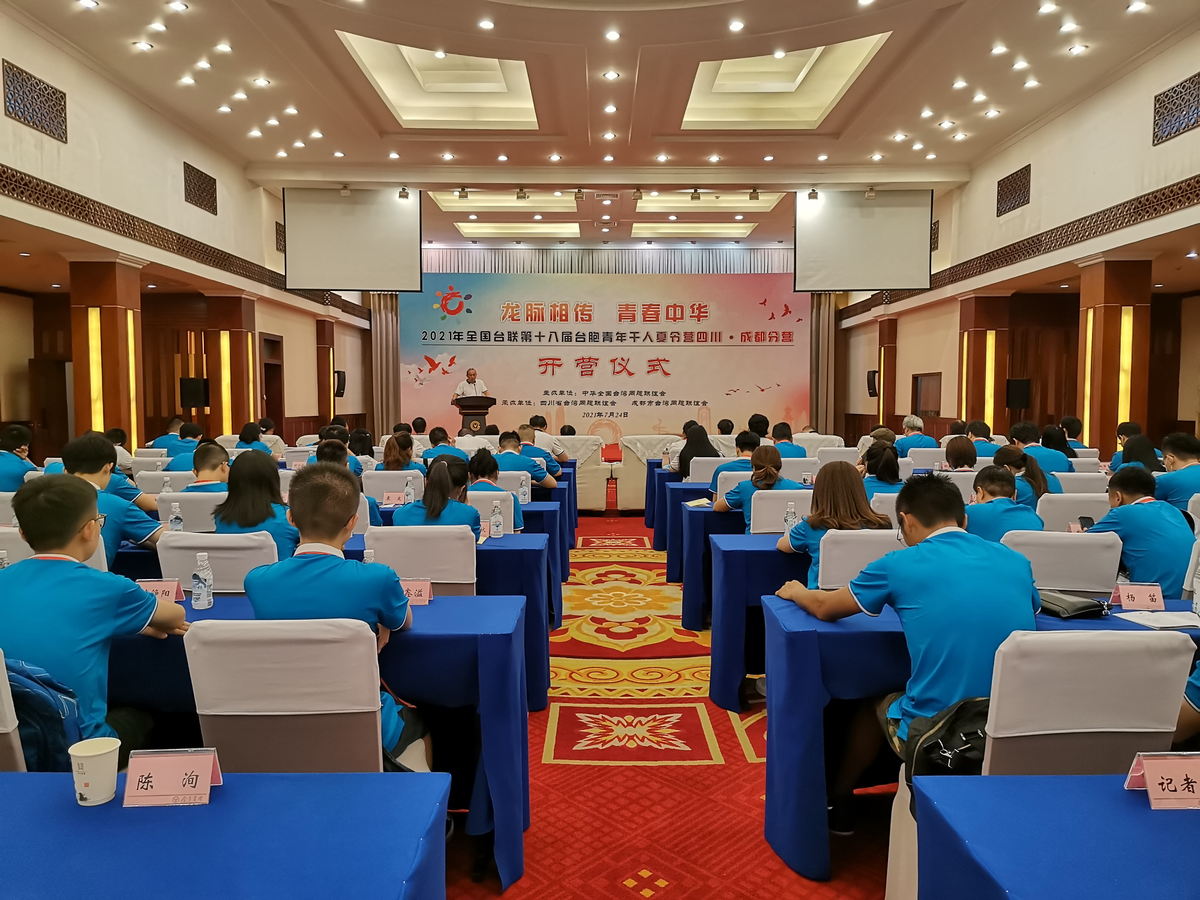 7月24日上午,由全国台联主办,四川省台湾同胞联谊会、成都市台湾同胞联谊会承办的“龙脉相传 青春中华”2021年全国台联第十八届台胞青年千人夏令营四川·成都分营正式开营。在川读书就业创业的台湾青年、台籍青年、两岸婚姻家庭成员,以及全国台联扶贫点榆中县的大学生志愿者90余人汇聚一堂,拉开了夏令营活动的序幕。