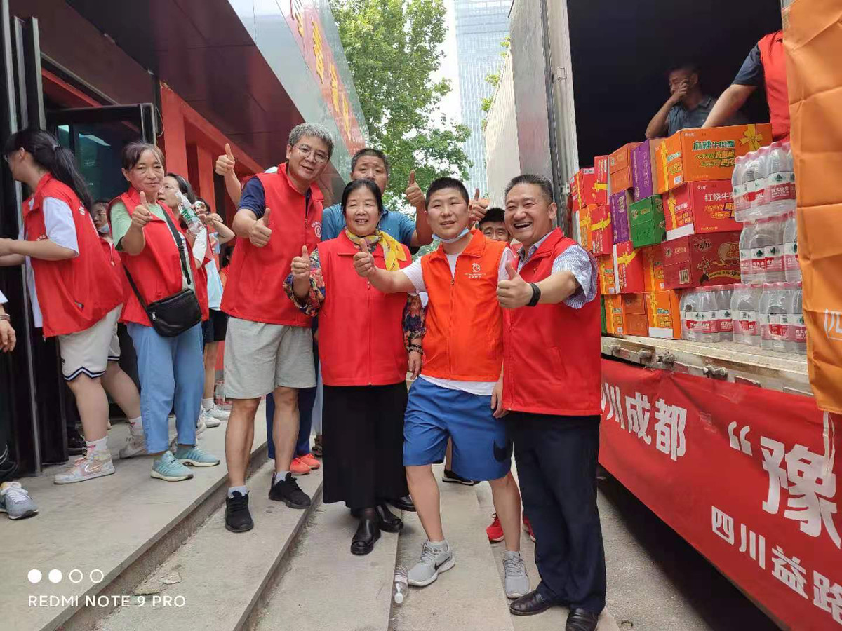 7月24日7点45分,由四川益路同行慈善服务中心注册志愿者“小铁”运送,一辆满载四川爱心人士捐赠的5吨多救灾物资的大卡车到达河南郑州。送至指定地点后,“小铁”又和郑州当地志愿者一起搬运分发物资。