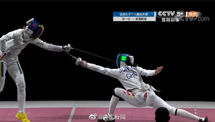 24日晚,中国选手孙一文在女子重剑决赛中战胜罗马尼亚选手波佩斯库,夺得冠军,为中国奥运军团添第三金。