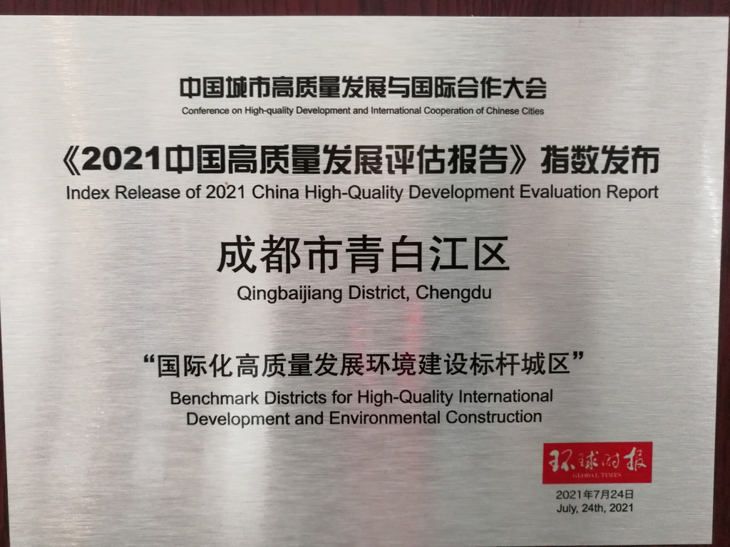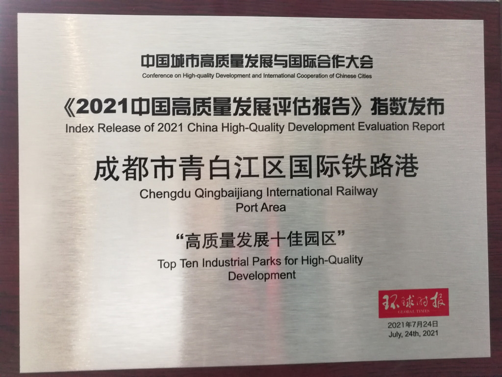7月24日,《环球时报》发布《2021中国高质量发展评估报告》榜单,从绿色发展、创新发展、营商环境、开放发展以及民生保障五个层面,涵盖16个二级指标对中国城市高质量发展进行了全景式评估。成都市青白江区荣获“国际化高质量发展环境建设标杆区”,成都国际铁路港因创新发展、开放发展等表现突出荣获“高质量发展十佳园区”。
