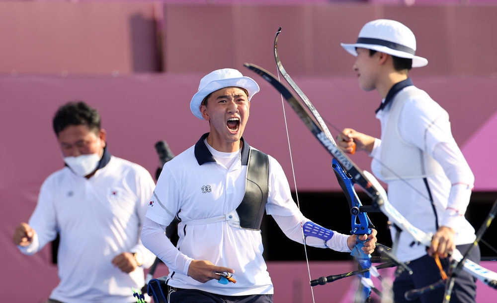 新华社东京7月24日电(记者赵焱)东京奥运会射箭项目新增的混合团体比赛24日决出金牌,由安山和金济德组成的韩国队在决赛中战胜荷兰夺得冠军,也为韩国代表团获得首金。