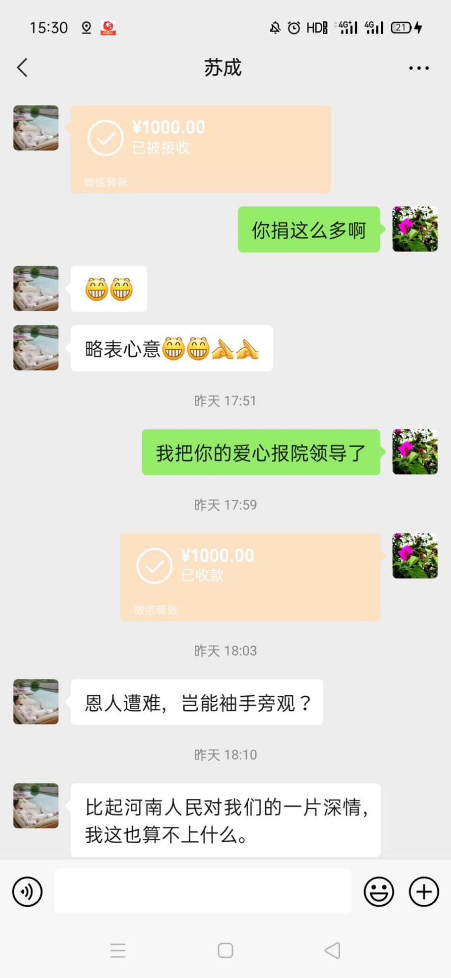 “ 站在宏伟气魄的中原爱心医院前,感受河南人民的深情厚谊,我们从不曾忘记他们的恩情。一方有难,八方支援,希望我们的爱心能凝聚起河南人民重建家园的磅礴力量。”医院供应室职工苏成说。