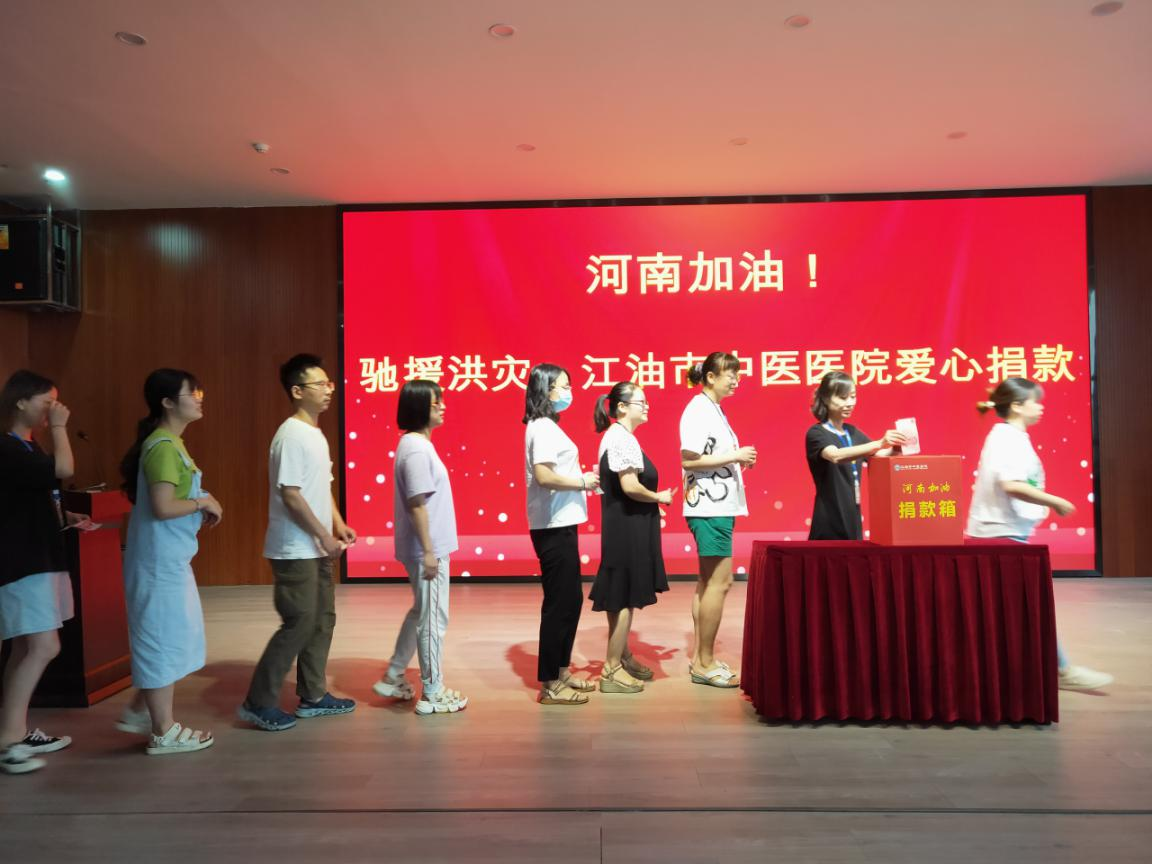 近日,河南多地出现大范围暴雨,给河南地区人民群众生命财产造成重大损失。这场洪灾牵动着曾经受恩于河南的每一位江油中医药人的心。医院全体干部职工自发向受灾群众奉献爱心,短短一个半小时,募集爱心捐款4万7千余元,转交河南受灾单位。