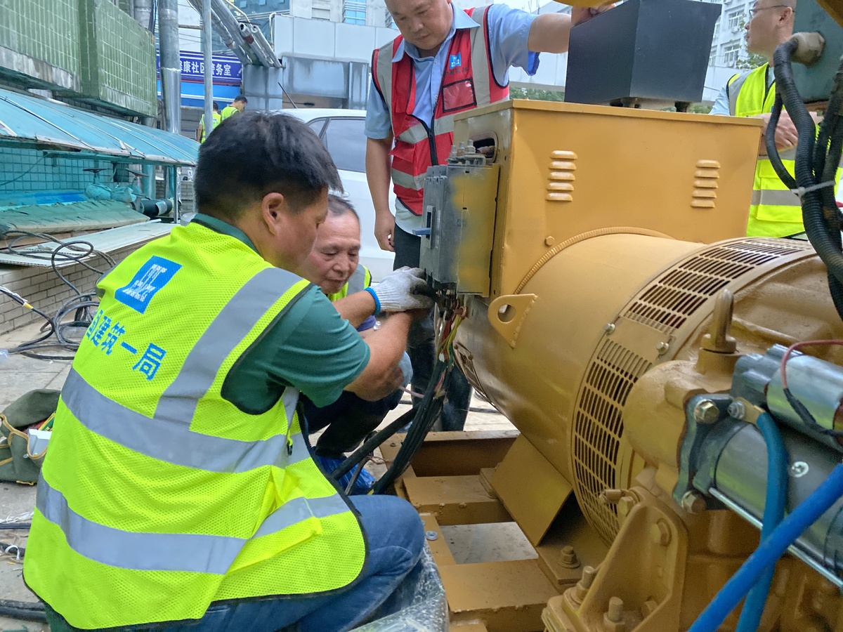 中建一局一公司紧急组织一支20余人的应急抢险队迅速展开援助,立即调配1台350千瓦柴油发电机,连同200米电缆线、2台大功率抽水泵、600米水带等抢险物资赶到医院开展抢险救援工作,帮助医院接通临时用电。经过三个小时的紧张作业,PICU病房终于通电亮灯。