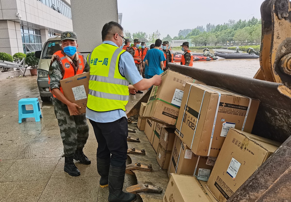 “阜外医院急救物资到货,急需防水交通工具运送进去!”阜外华中心血管病医院是郑州市内受灾最严重的医院之一,医院一层被淹,医院附近水深约两米,物资无法通过大车运送进医院,只能通过皮划艇一点一点地运输物资。“我们有铲车!我们来送!”中建一局一公司先锋志愿者们快速协调,利用铲车一趟趟将救援物资运到医院内,为患者送去“救命药”。