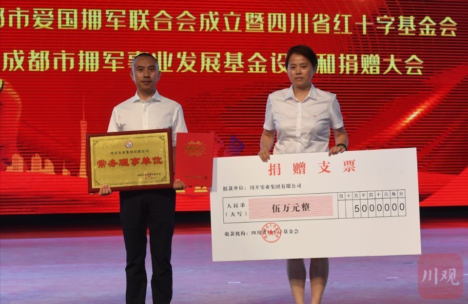 7月27日下午,成都市爱国拥军联合会成立暨四川省红十字基金会成都市拥军事业发展基金设立现场捐赠大会在武警警官学院大会堂顺利举行。来自全市23个区(市)县退役军人事务局和红十字会负责人、爱国拥军联合会成员单位代表、爱心企业代表和爱心人士参加。