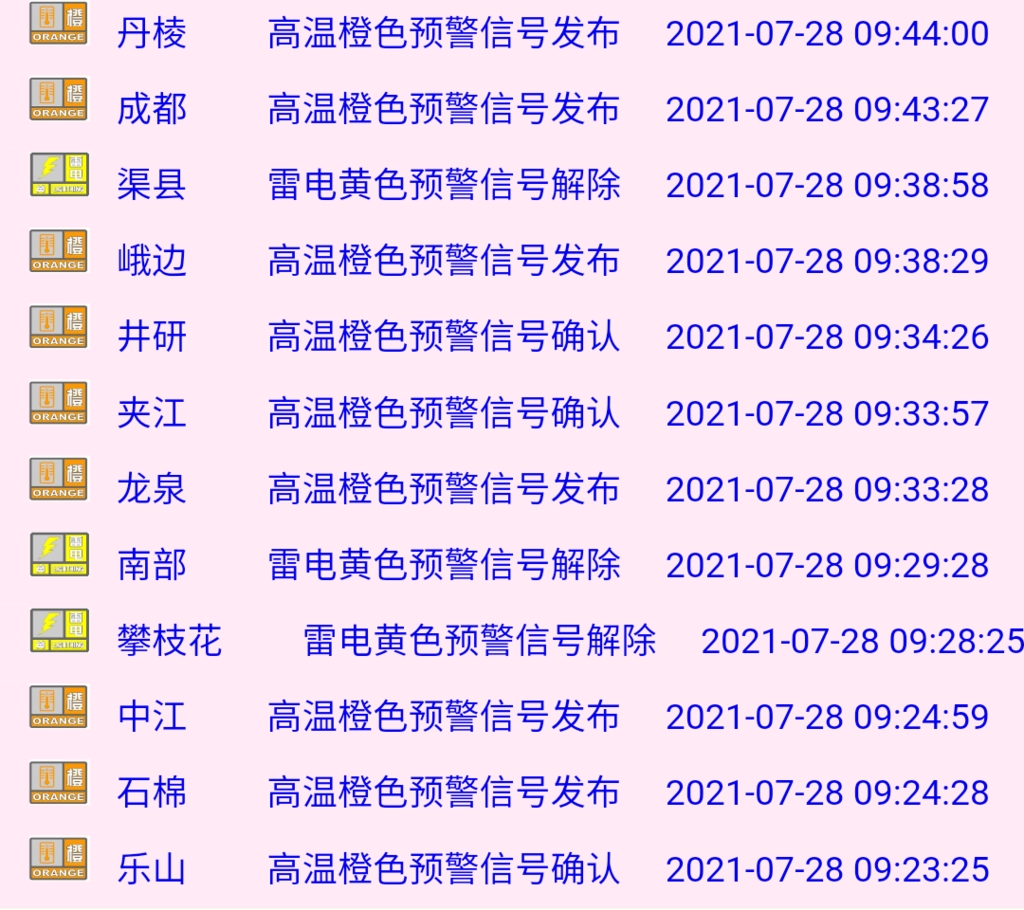 截至记者发稿,全省各地气象部门已发出高温橙色预警信号36条。