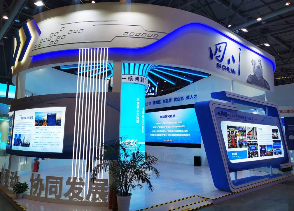 7月28日,四川在线记者来到四川展区,只见整个展区形似一面迎风招展的旗帜,寓意在党的领导和指引下,奋力开创新时代四川人力资源服务业高质量发展新篇章;矗立展区正中的“生命之树”,象征着四川人力资源服务业蓬勃发展生机盎然;主通道一旁的“蜀南竹海”、“大熊猫”、“三星堆”、“339”等标志性元素,充分彰显了四川特色和天府气派。在成果成品展示区,运用多媒体、模型、图文等多种手段展示了四川人力资源服务业发展的总体情况。