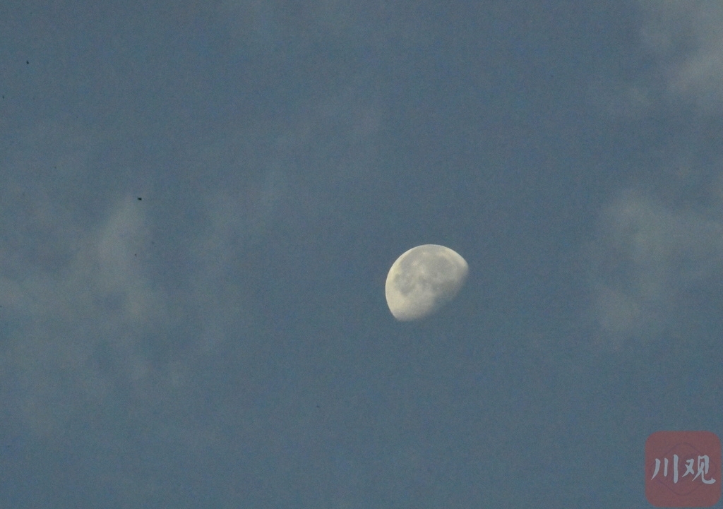 今日早晨6时许,洁白的月亮挂在成都上空。