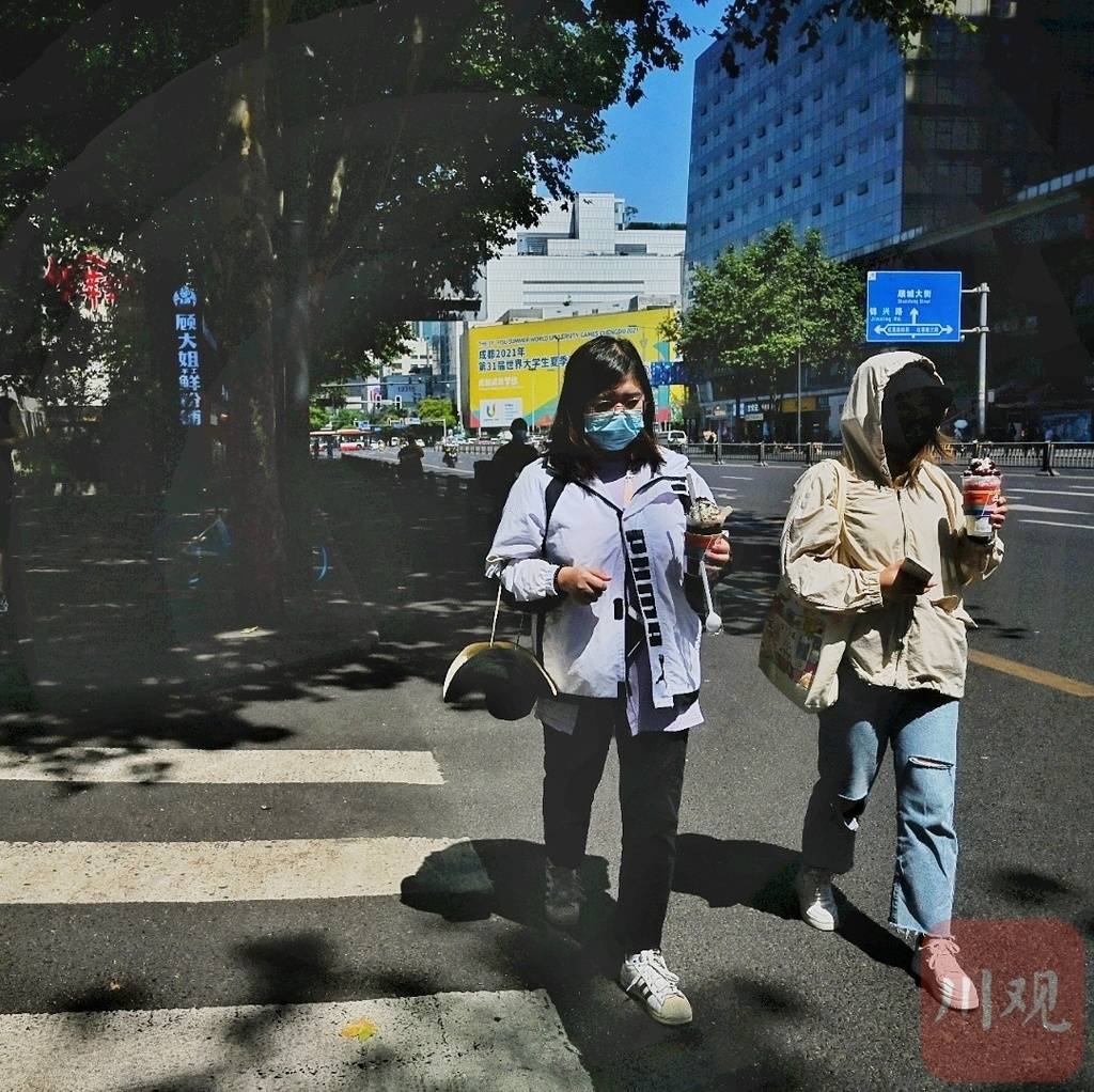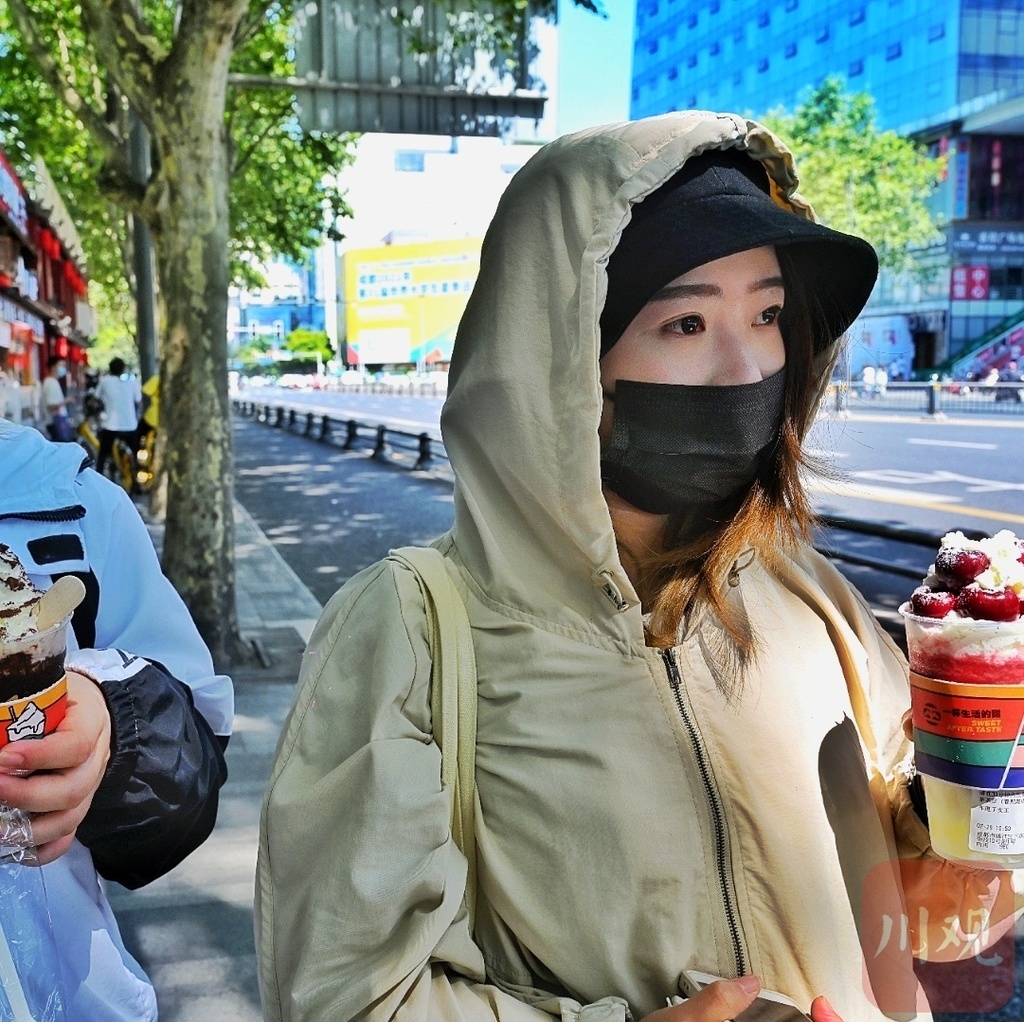 望平街、太古里、春熙路、东大街……伏天行人各有各的避暑方式,有的全副武装包裹严实吃着凉品,有的为凉爽露肩露背,游泳池更是一早就有泳友泡在池里。