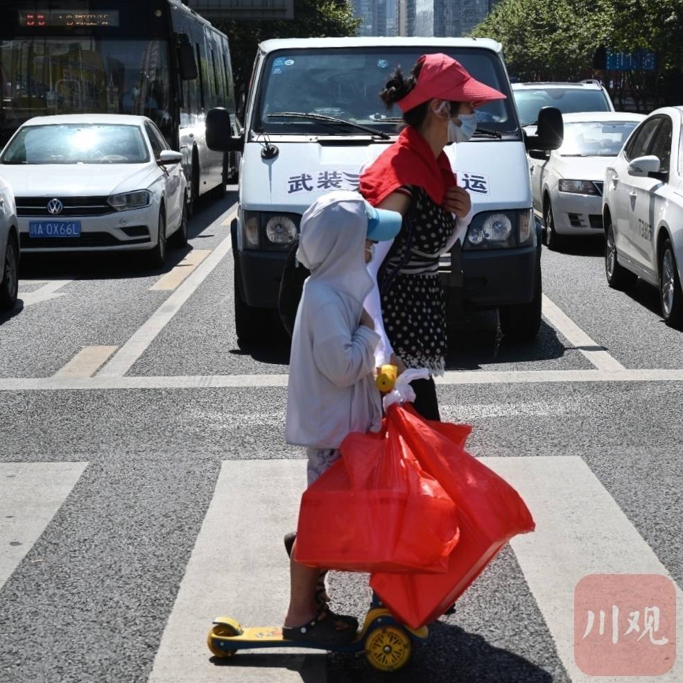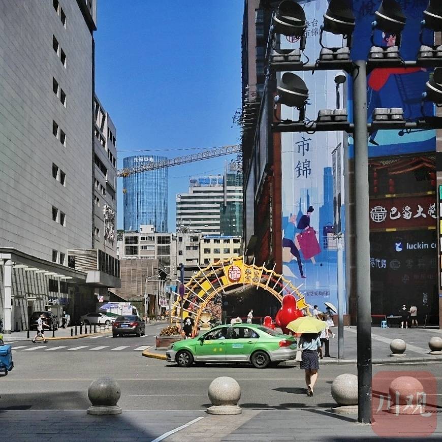7月29日,成都发布高温橙色预警,以往熙熙攘攘的街头在烈日下清静了许多。