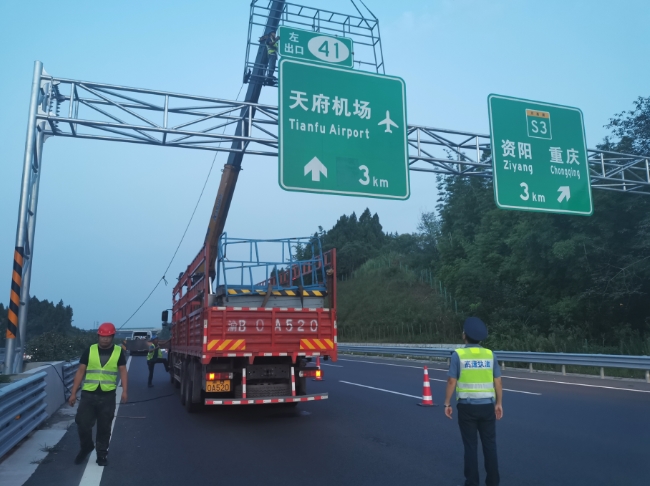 具体来说,此次所设置的交通标志标牌均执行国家和行业有关技术标准及规范,内容、颜色、字符、图形、尺寸等符合强制性要求。所有指引机场的信息,均区分天府机场、双流机场,主要指引路径上的分岔处,均同时设置双机场的指引标志。同时,综合考量字体、提示信息、指示符号、设置尺寸等多种因素,尽可能简洁、明了的显示机场路线信息,力求板面醒目、美观,利于出行群众准确识别。