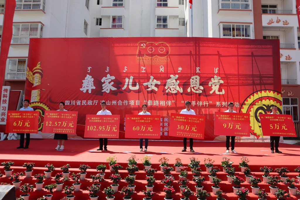 6月28日,四川省五粮液慈善基金会等12家社会爱心单位向“彝路相伴”“牵手伴行”易地扶贫搬迁集中安置社区捐赠了价值165万元的物资和67万元的现金。