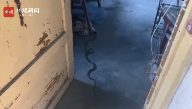 蛇在家里待了六个小时,居然没有挪动。消防人员怀疑蛇是不是因为天气炎热中了暑,于是利用捕蛇夹夹住蛇的七寸,连同咬在嘴里的桌布一起装入编织袋,来到阴凉水沟处将其放生。