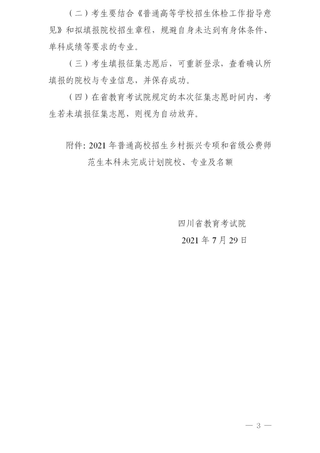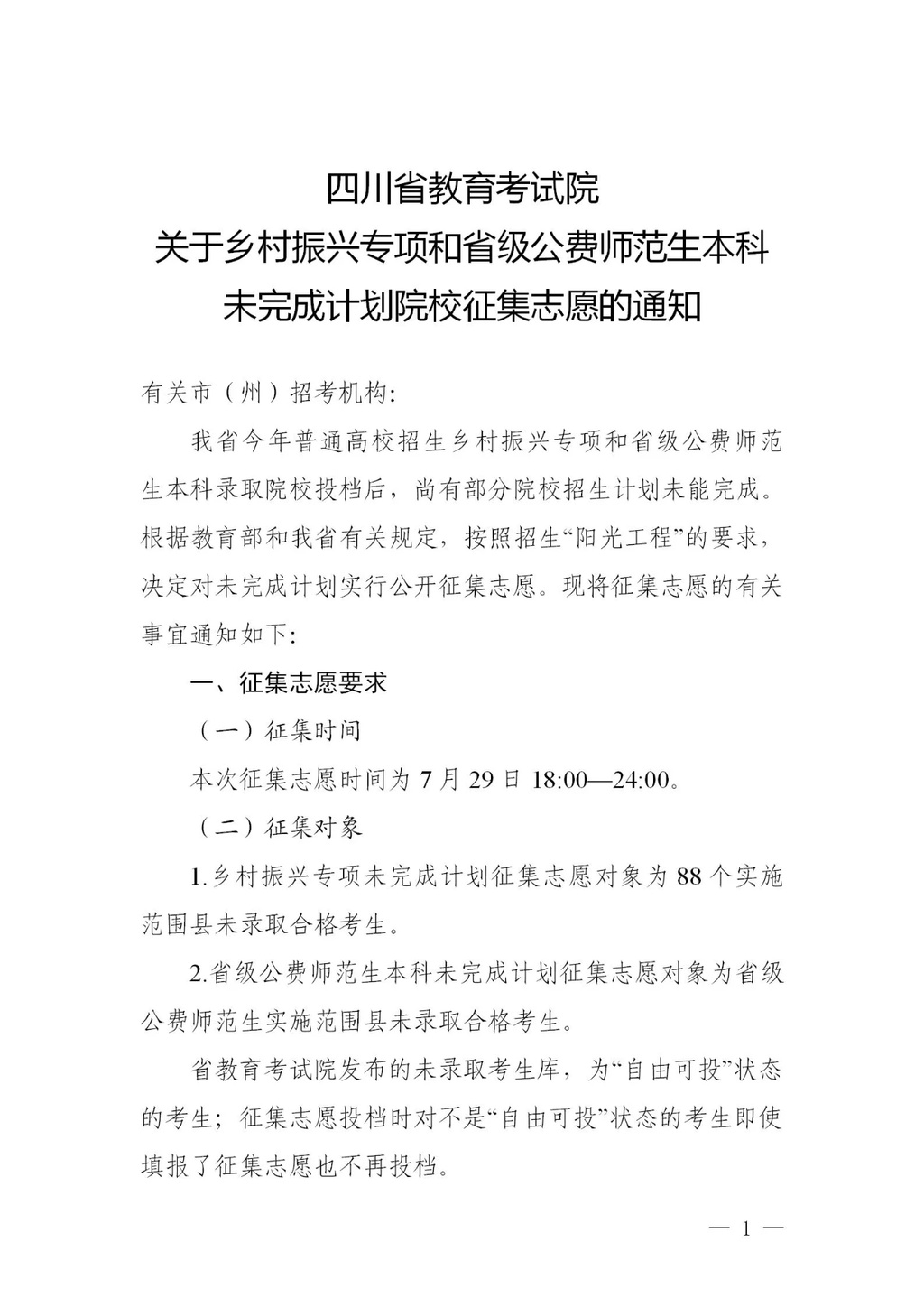四川考生注意啦,7月29日24:00截止!乡村振兴专项和省级公费师范生本科未完成计划院校征集志愿来啦。