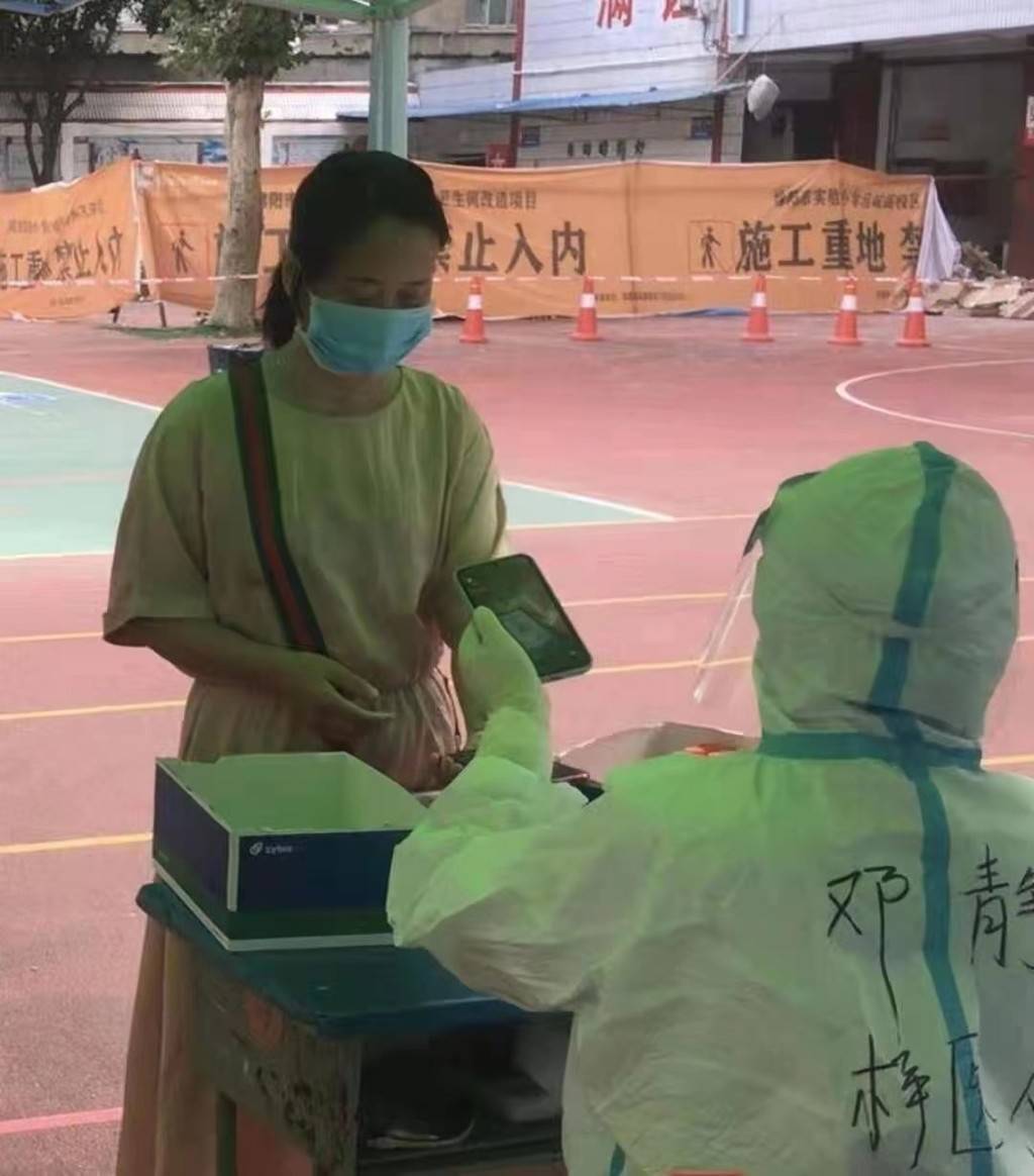 在绵阳市涪城路小学检测点,记者看到,在收集市民信息过程中,医护人员通过扫描市民健康码,30秒内就可完成信息采集。在检测过程中,2个人为一组,一人用系统扫描市民提前准备的手机健康码,另一名医护人员采集核酸样本。“通过扫描市民健康码,大大加快了登记进度,不仅节约了市民排队等候时间,使市民在外暴露时间减少,降低传染风险,也大大提高了我们的工作效率。”
