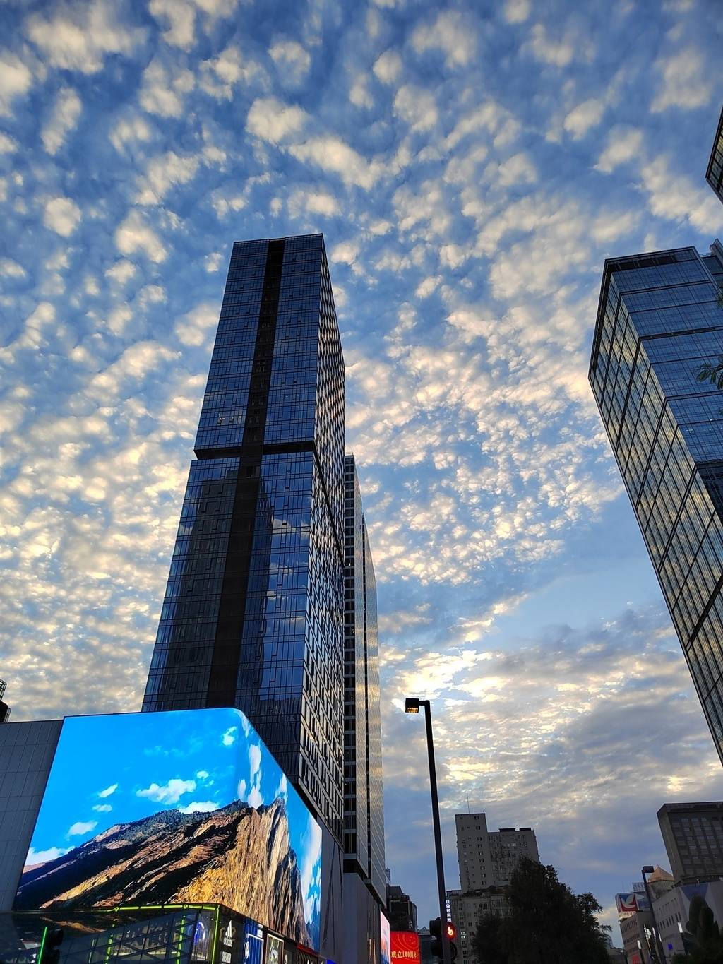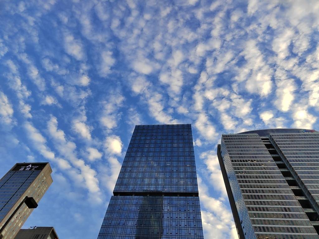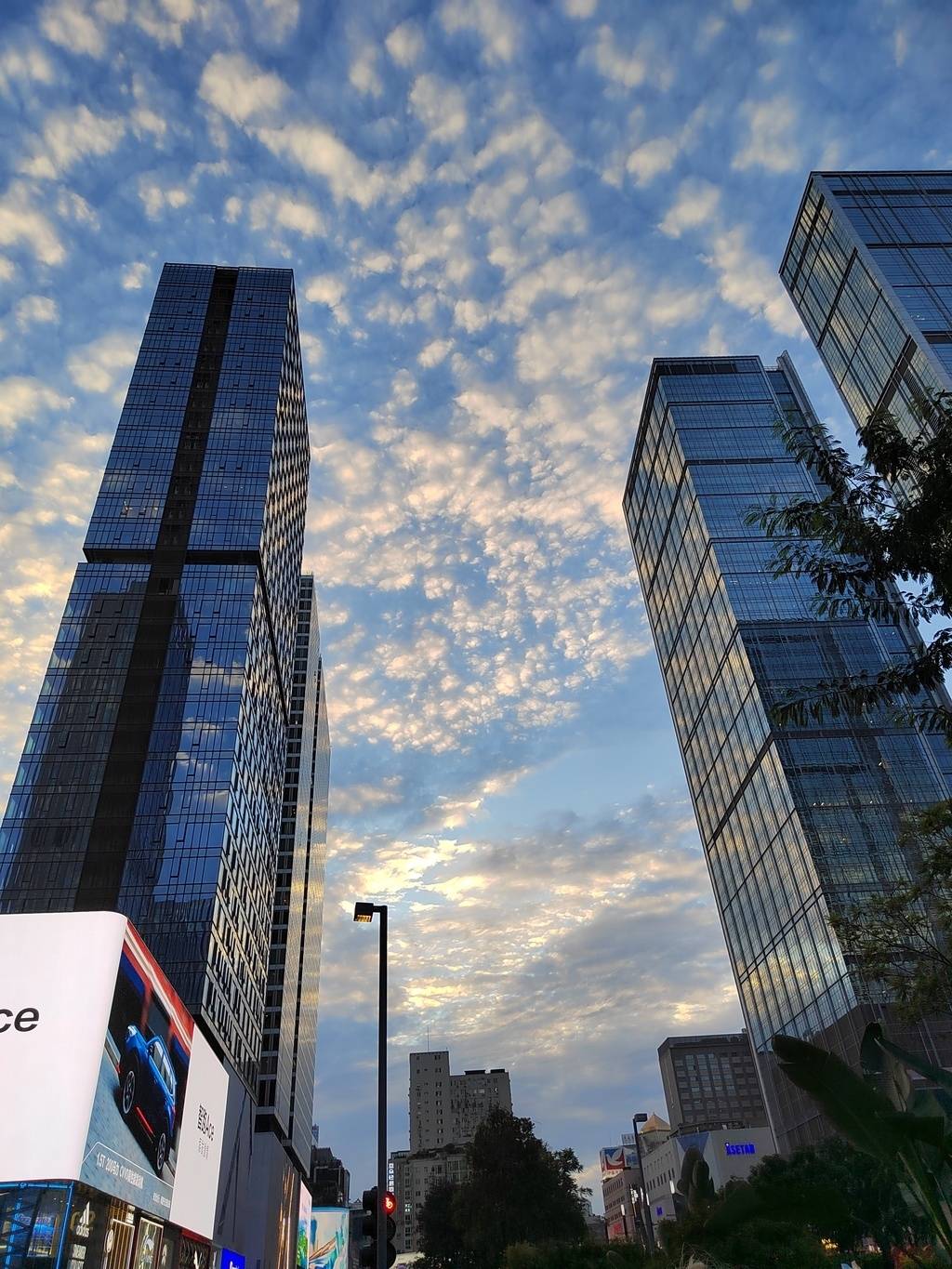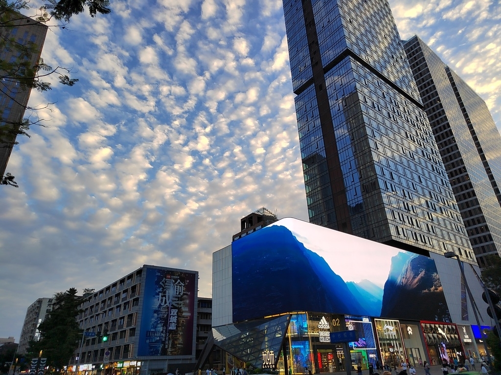 视频|成都:“棉花云”黄昏漫步天穹 与风共舞演绎都市梦幻天空