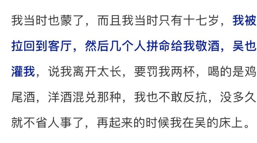 不久前,新浪微博用户@都美竹通过在微博上发文和接受采访等方式举报明星艺人吴某凡涉嫌在我国境内以各种方式物色、诱骗年轻女性发生关系。都美竹称,包括自己在内的受害者远超8人,其中甚至包括2名未成年女生。7月18日,都美竹再度在微博上发文,控诉吴某凡还涉嫌伙同他人迷奸和强奸女性。