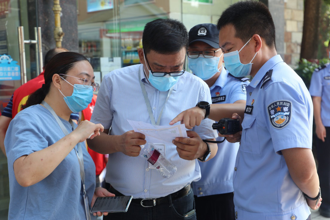 经调查,民警初步掌握了患者的主要活动轨迹:除本小区,还有附近的两个商场。于是,9名民警兵分三路,逐秒查看这个三场所近日的所有视频监控,以掌握与患者密切接触的人员,为下一步疫情防控工作争取主动权。