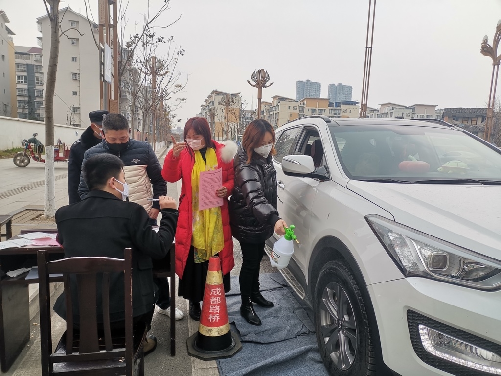 黎明社区常住居民、流动人口有1.2万人,当时,李定碧不仅要协调返乡人员居家隔离,保证他们基本生活无虞,还要做好社区居民的安抚工作。“早上6点起床出门,夜里很晚才回家,甚至熬通宵,困了就在办公室睡折叠椅。”在她的带动下,一大批党员下沉网格,社区居民、志愿者、小区物管等共同组成了“黎明战疫”工作队,每天义务到小区院落宣传、到卡点执勤、为车辆消毒、为居家观察人员送物资。