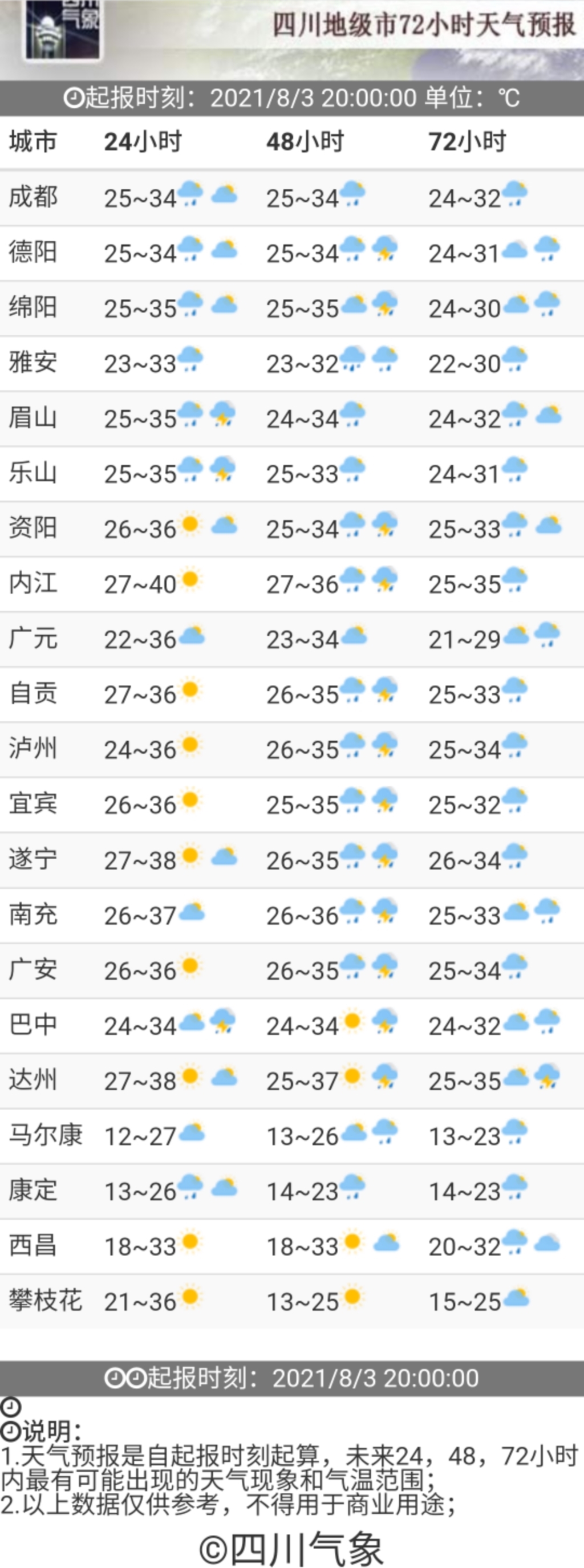 可是、可是,太阳公公的热情,目前连雨水也不能阻挡。你看那绿色,云淡风轻,整个四川的主旋律天气还是“多云”“晴间多云”,包括上述有雨的地区。所以8月4日~5日,全省平均气温依然不低。
