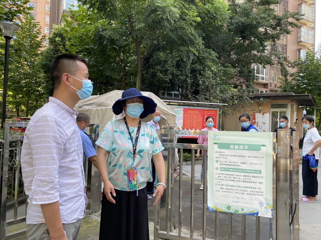公平街道关工委五老志愿者在小区门口检查进出人员健康码