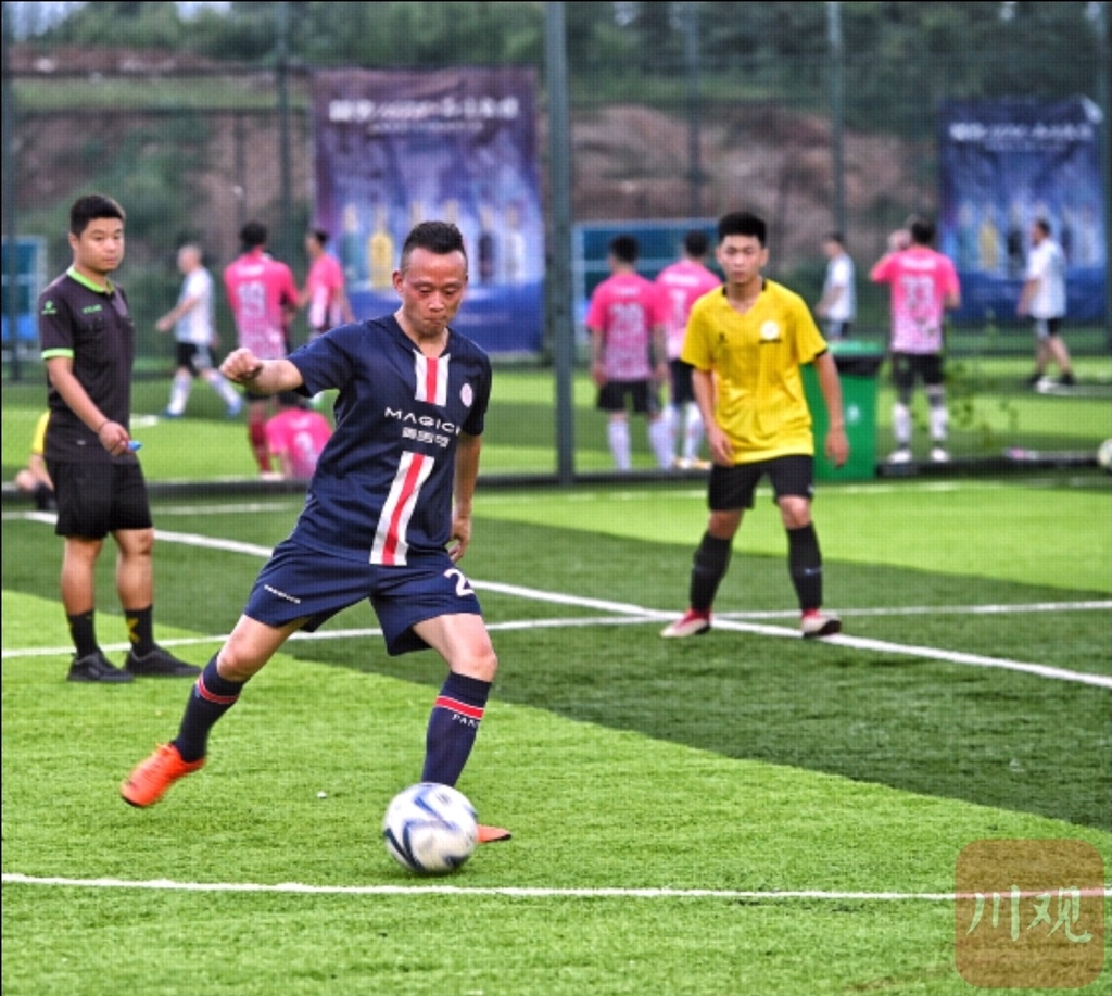 8月3日傍晚,成都七彩田野足球公园,一场激烈的八人制足球赛正在进行,比赛的双方是成都两支业余球队。