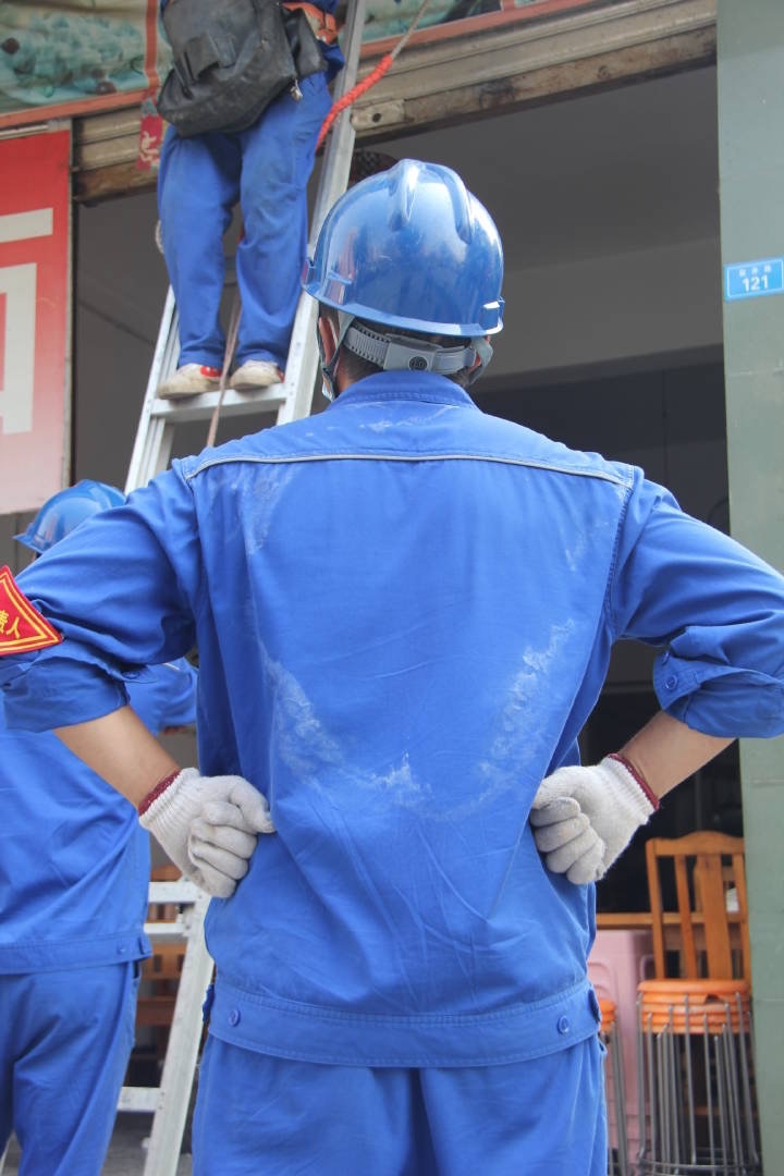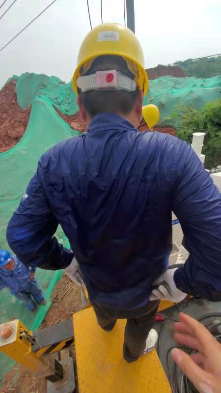 ▲金堂供电公司带电作业人员战高温保供电,避免了周围居民停电,现场烈日炎炎,电力工人衣服全部湿透。