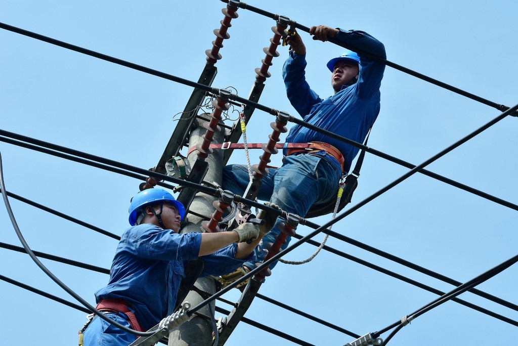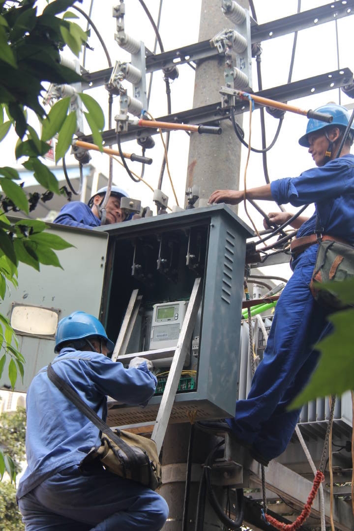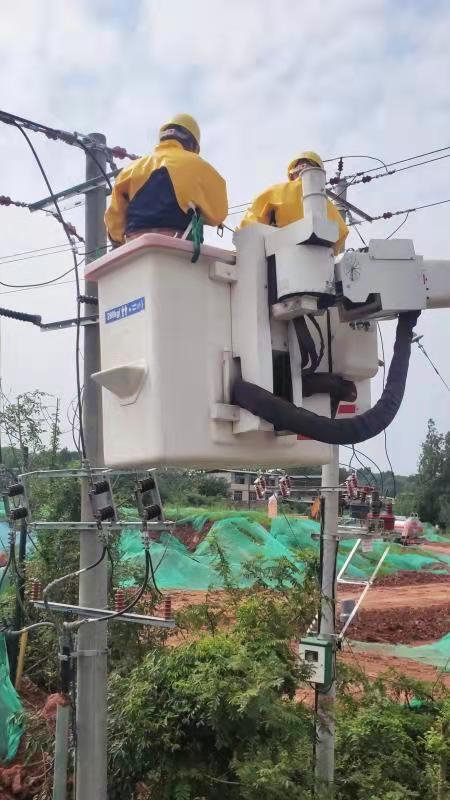 ▲连日高温致电网负荷陡增,蒲江供电公司检修人员优化电网结构,开展负荷改接工作。