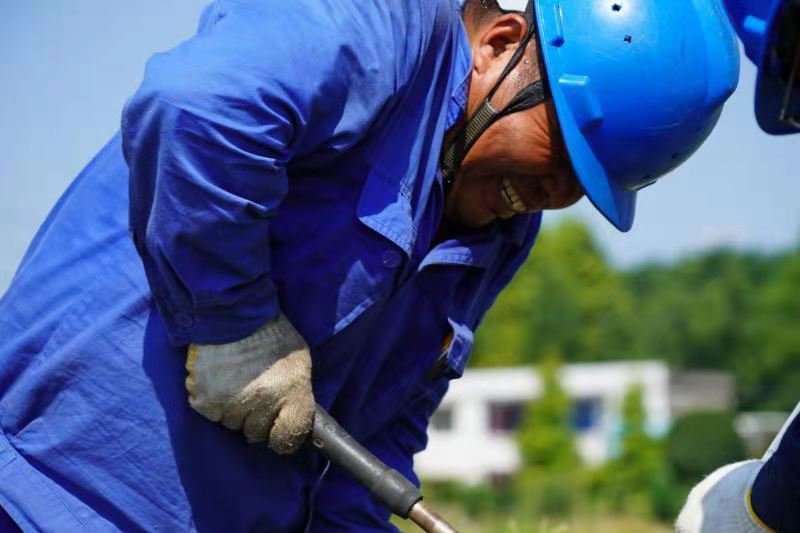 ▲8月3日,大邑供电公司检修人员从早上7点到下午6点,头顶烈日奋战一天,顺利完成马王村10千伏官羊路线路迁改。