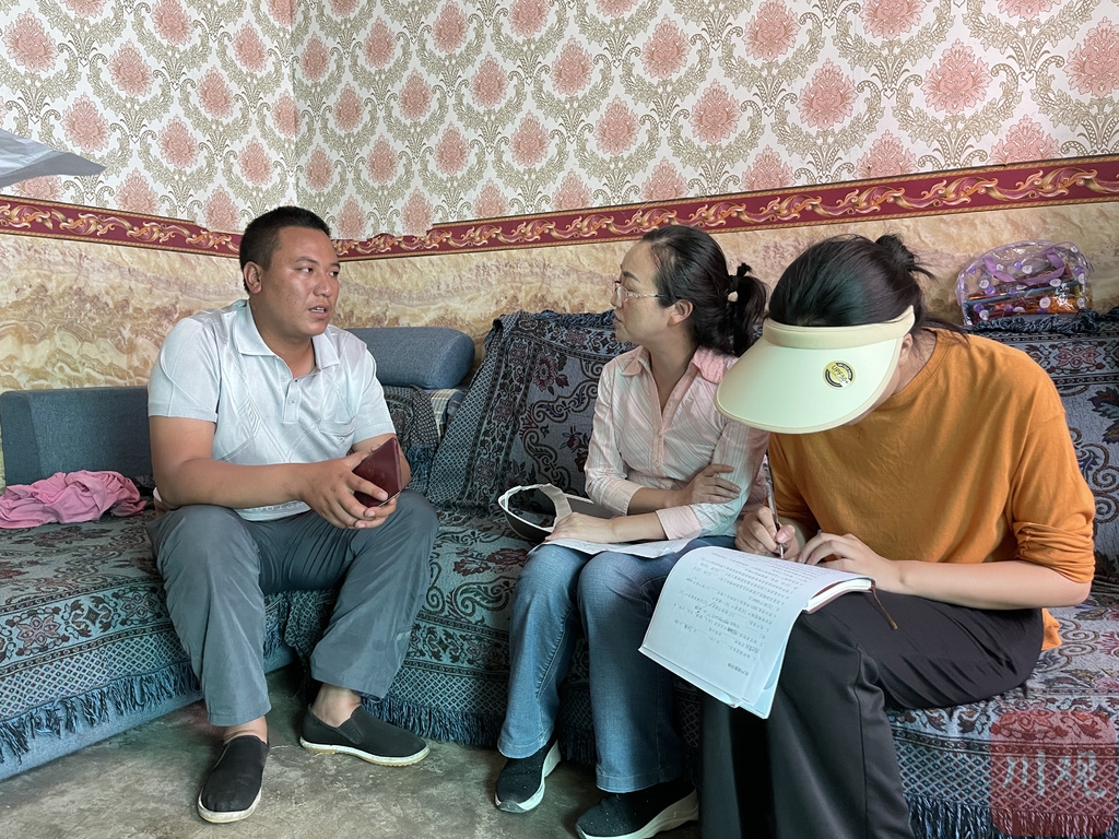 随后调研组走访了村里的农户。“今年3月,我去了浙江做水电安装小工,有活就干,这几天没活,就回来了,挣了一万多块钱。家里有一亩地种麦子,养了两头母猪、一头小猪,另外还有草原补贴、生态林补贴、粮食补贴、村集体经济收入。”28岁的阿支麻玛说。