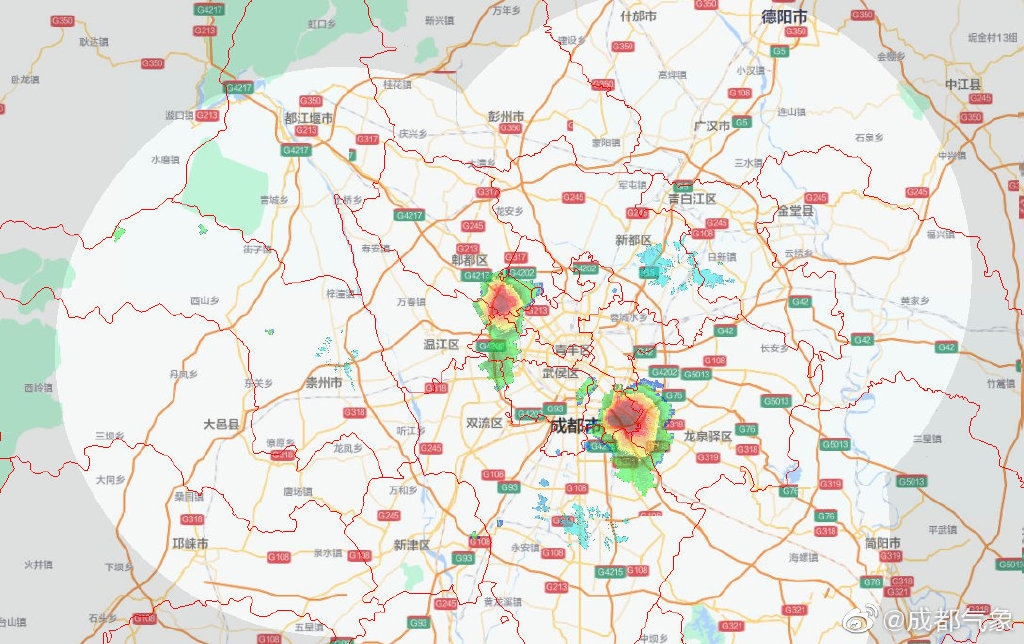 成都市气象台8月4日16时25分发布短时临近天气预报:目前成都市龙泉驿、郫都、双流和青羊区有分散对流发展,预计未来6小时我市大部地方有分散阵雨或雷雨,个别地方大雨到暴雨,并伴有雷电、短时强降水和6级以上阵性大风,请注意防范。