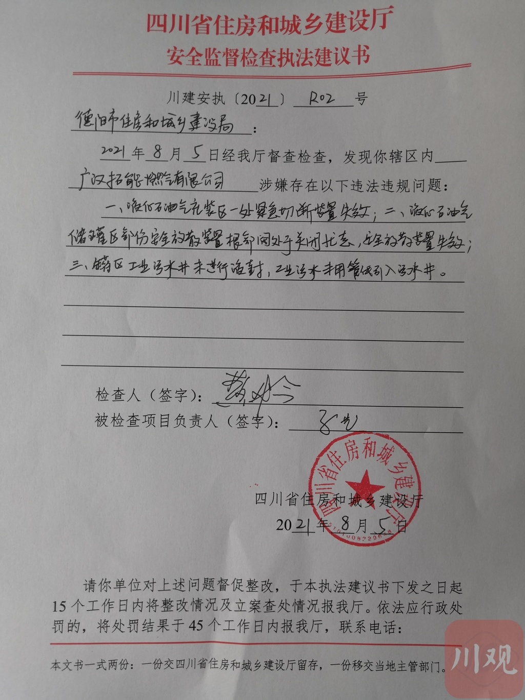 在向两家企业相关负责人指出问题后,暗访组向当地住建部门开出《安全监督检查执法建议书》,督促企业进行积极整改,发现违法事实要及时查处。