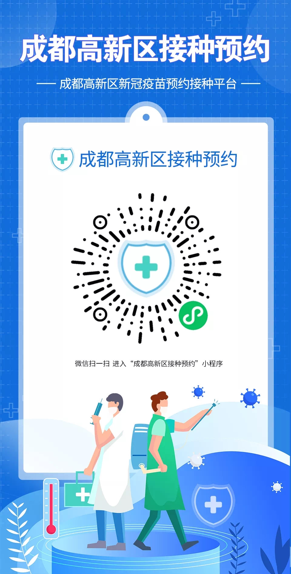 扫描进入“成都高新区新冠疫苗预约接种平台”小程序↓↓↓