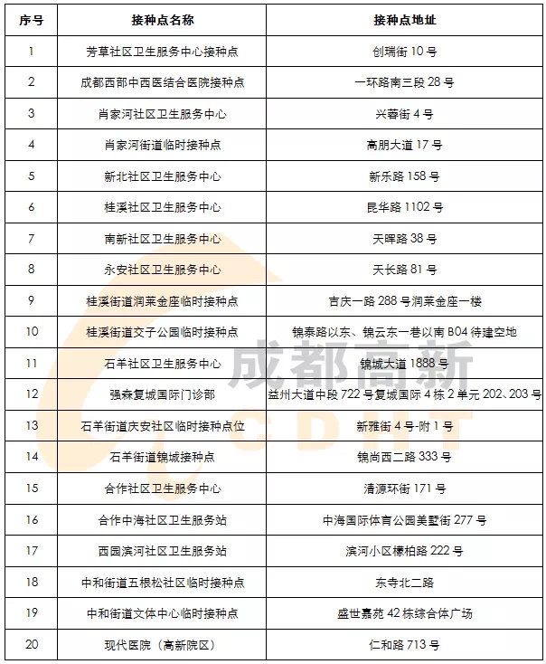 3. 以上人群,也可根据实际情况,就近进行接种(成都高新区接种点及联系方式见附表)。
