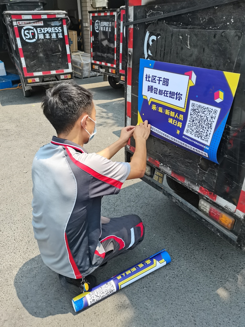 连日来,新都区委社治委将快递小哥“丰行侠”纳入防疫队伍,在美团、顺丰、韵达、中通等多家“丰行侠”成员单位联盟中发起“扫街”行动——通过在百余辆快递及外卖小哥车上张贴社区“报到码”,让“丰行侠”化身移动社区报到点,充分发挥“丰行侠”移动与渗透作用,进一步提升社区“报到码”的知晓度,让更多来(返)新都的人能够及时扫码报到。