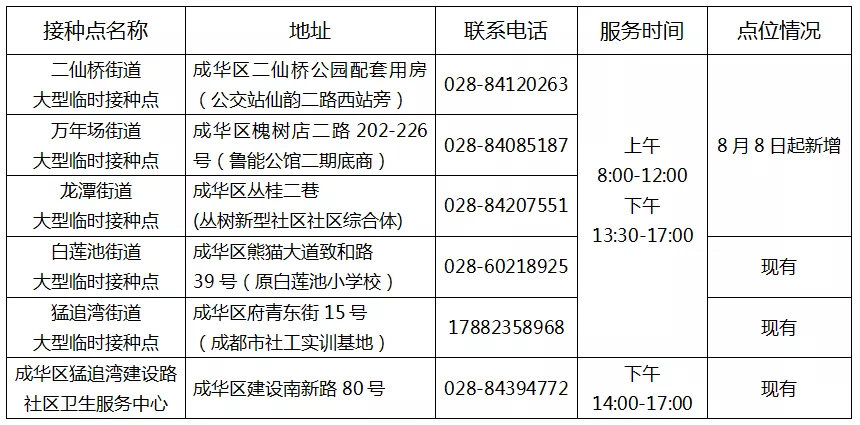 为进一步满足12—17岁青少年朋友的接种需求,方便就近接种,自2021年8月8日起,成华区12—17岁青少年新冠病毒疫苗接种点将再增加3个,全区共增至6个,青少年朋友和家长们可按需前往。