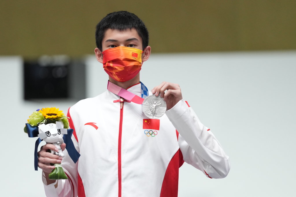 7月25日,盛李豪在东京奥运会射击男子10米气步枪决赛中获得银牌(图源:新华社)