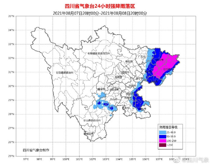 四川省气象台8月7日16时00分继续发布暴雨蓝色预警: