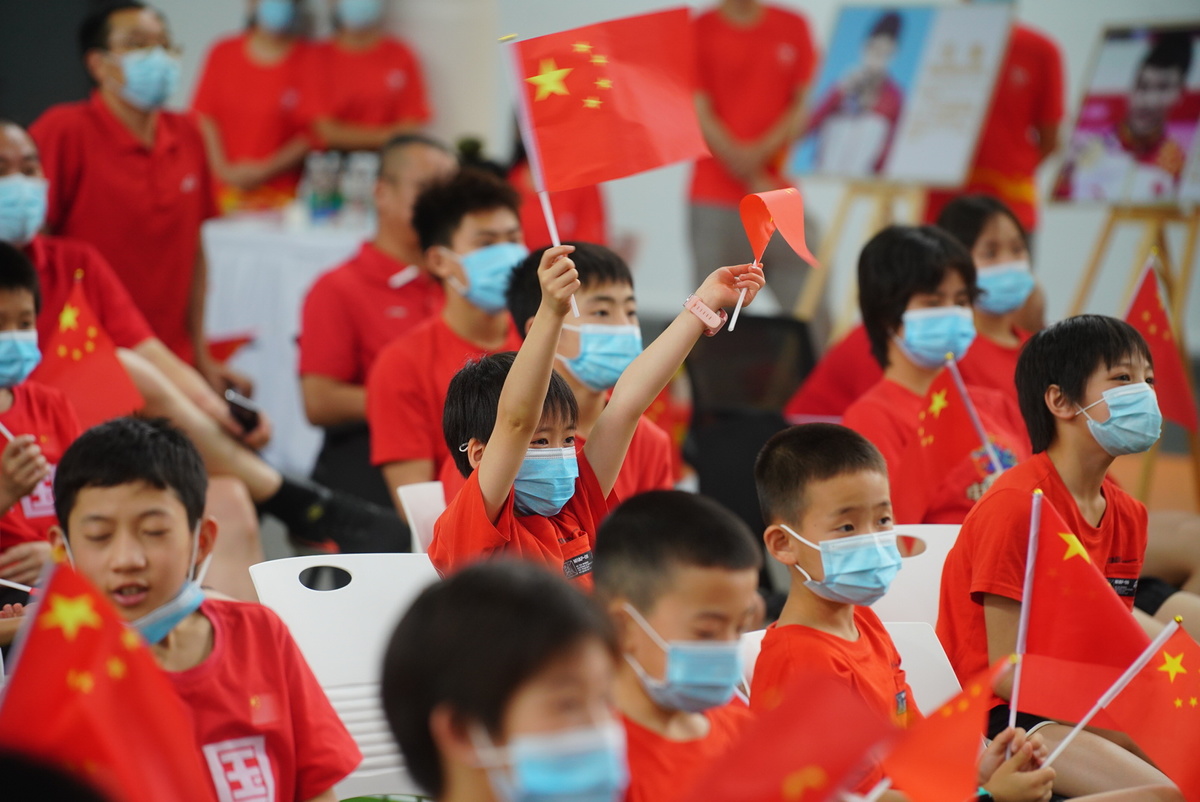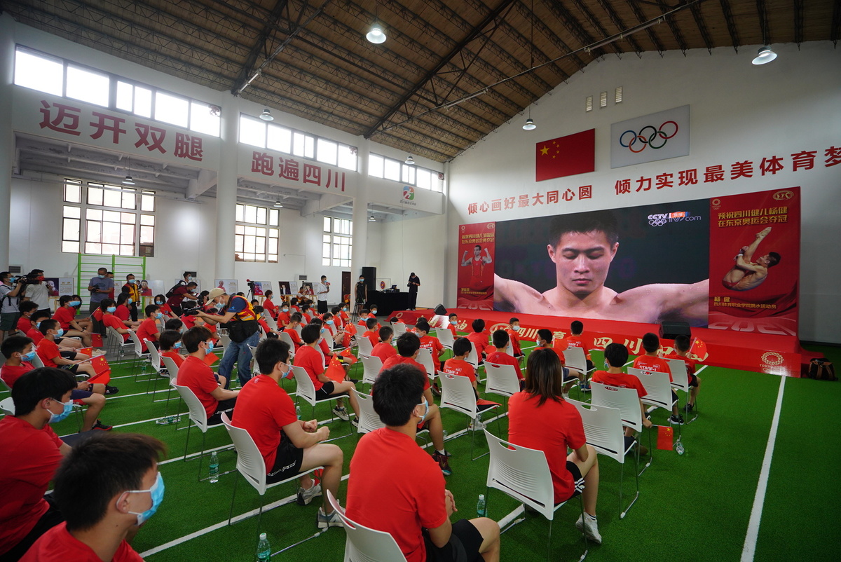 来自四川省游泳学校和省队的60余名跳水运动员、杨健的启蒙教练、省队教练、还有伦敦奥运会男子单人10米跳台银牌得主,同时也是杨健曾经的老搭档邱波都来到现场,一同见证家乡的骄傲杨健站上奥运会的领奖台。