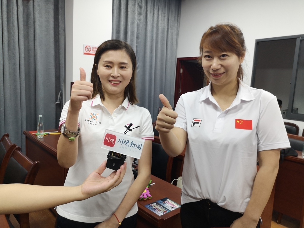 比赛结束,屏幕上打出中国队成绩。“应该是银牌!”杨薇与侯徐转身过去,击掌庆祝。